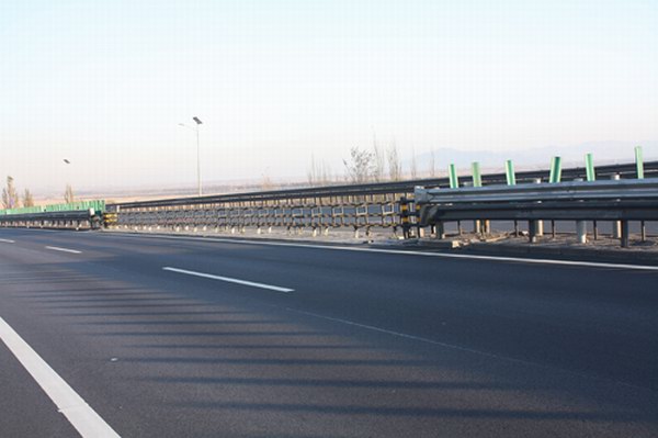本項(xiàng)目將原有的單層護(hù)欄加高為雙層護(hù)欄,其防撞能力大大提高,并在京張高速公路上首次采用了鋼管預(yù)應(yīng)力索式防撞活動(dòng)護(hù)欄,該護(hù)欄在試驗(yàn)場(chǎng)通過(guò)實(shí)車(chē)碰撞實(shí)驗(yàn)證明,在安全性方面滿足并高于《高速公路交通工程及沿線設(shè)施設(shè)計(jì)通用規(guī)范》(JTG D80-2006)DE 要求,達(dá)到了和中央分隔帶護(hù)欄相同等級(jí)的防撞能力。