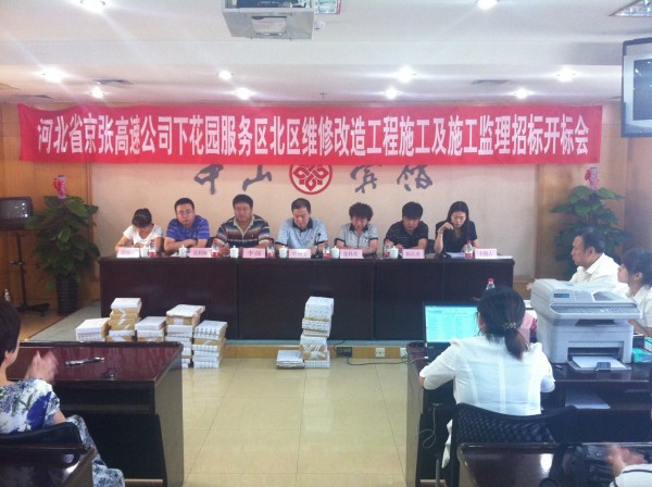 6月11日,京張高速公路下花園服務區(qū)北區(qū)維修改造工程施工及施工監(jiān)理開標會在石家莊中山賓館會議室召開。公司計劃部及工程養(yǎng)護部有關人員出席開標會議。