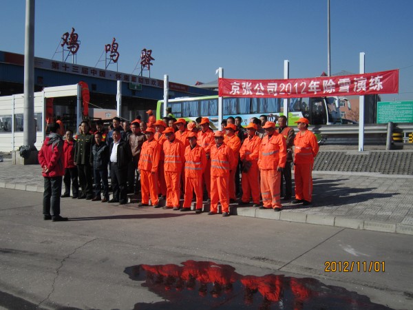 此次演練共動用吹雪車1臺,融雪液灑布車4臺,雙排座4臺,巡查車2臺,融雪劑撒播車1臺,推雪鏟2臺,裝載機(jī)1臺,參加人員共計60人。通過演練,完善了公司的應(yīng)急機(jī)制,提高了除雪實戰(zhàn)能力,檢驗了除雪設(shè)備性能。京張公司將按照演練的結(jié)果汲取經(jīng)驗,打好冬季除雪的攻堅戰(zhàn),確保京張高速公路的全線暢通,圓滿完成今年的除雪任務(wù)。(除雪辦公室)