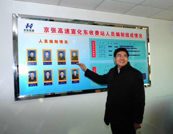 在宣化東收費(fèi)站,孫智勇一行查看了收費(fèi)站的榮譽(yù)室、票證室、結(jié)算室、宿舍、星級考核欄、站務(wù)公開欄等,詳細(xì)了解收費(fèi)站的人員組成、收費(fèi)任務(wù)的完成情況、收費(fèi)流程、隊(duì)伍建設(shè)等情況。在結(jié)算室,孫智勇專門讓票證員拿來收費(fèi)結(jié)算的單據(jù),詳細(xì)了解收費(fèi)結(jié)算流程,并親切詢問收費(fèi)員的家庭、生活、收入等情況,感謝他們?yōu)楣咀龀龅呢暙I(xiàn)。在認(rèn)真了解公司對收費(fèi)人員實(shí)行的星級考核內(nèi)容后,他給予了充分的肯定和贊許,認(rèn)為這種考核辦法既考慮了行業(yè)特點(diǎn)又結(jié)合了現(xiàn)代企業(yè)的要求,對于調(diào)動員工的工作積極性、提高企業(yè)的效益有極大的促進(jìn)作用。