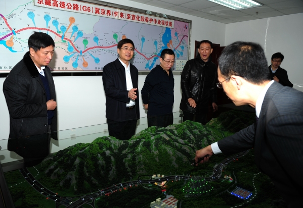 京張高速是國際奧委會考察團(tuán)到張家口進(jìn)行考察評估的必經(jīng)之路,是面向世界的一個(gè)重要窗口,下花園服務(wù)區(qū)是河北省和張家口市申奧辦公室指定的奧運(yùn)休息站之一。孫智勇一行首先乘車沿途查看了京張高速的路容路貌以及公司為申冬奧所做的一系列專項(xiàng)工程。劉建民總經(jīng)理詳細(xì)介紹了公司按照河北省政府提出的“將京張高速打造成河北第一迎賓大道”的要求,在中修罩面、綠色廊道建設(shè)品質(zhì)提升、路側(cè)波形梁護(hù)欄增設(shè)、全線防撞護(hù)欄及防眩板噴漆刷新、官廳湖特大橋外護(hù)欄更換、重新施劃受損道路標(biāo)線以及在冀京界安裝龍門架,設(shè)置“河北歡迎您”大型宣傳牌、在下花園服務(wù)區(qū)設(shè)置大型迎賓廣告牌,營造濃厚的申奧氛圍等方面投入的大量人力物力,以及受到河北省領(lǐng)導(dǎo)和省申冬奧辦表揚(yáng)和肯定的情況。