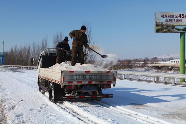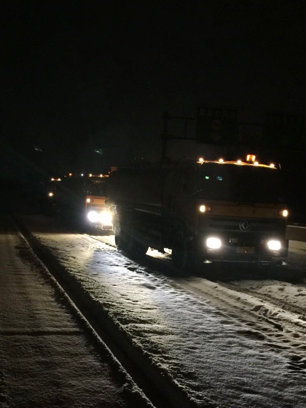 遠在外地的劉建民總經(jīng)理十分關(guān)心除雪進程,多次打電話對除雪工作進行部署,王啟成總工程師提前結(jié)束休假趕回公司現(xiàn)場坐鎮(zhèn)指揮,直到深夜才休息,帶班領(lǐng)導(dǎo)也親自上路察看雪情,為辛苦工作的養(yǎng)護工人鼓勁。