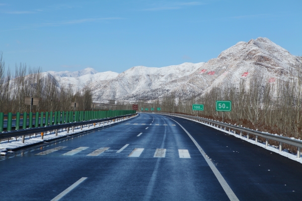 大雪一直下到23日凌晨,當(dāng)天上午,張家口地區(qū)天氣放晴,久違的太陽露出溫暖的笑臉,為徹底完成本次除雪工作提供了良好的契機。公司除雪指揮部抓住時機,組織連續(xù)奮戰(zhàn)了幾天的除雪隊伍,調(diào)動大量除雪械,在干灑融雪劑的基礎(chǔ)上,采取集中突擊、整體推進的方式,迅速清除道路結(jié)冰和積雪。上午11時,出京方向八達嶺高速開始放行車輛,按照高速交警建議,除雪隊伍迅速趕到東花園收費站集結(jié),決定率先打通出京道路。隨著指揮員一聲令下,三輛鏟雪車在路上斜向一字排開,開足馬力向前推進,馬達轟鳴聲中,冰層盡去,白雪飛揚;融雪液噴灑車緊隨其后,水花四濺,殘雪消融,頑固的冰雪終于敗在了機械化除雪的威力面前。除雪大軍一路向西,在兩小時內(nèi)就推進到小慢嶺轄區(qū)盡頭。工人們在路上就著寒風(fēng)吃了點兒方便面,隨即折返向進京方向,一路高歌猛進。至下午15時,京張全路段徹底打通。