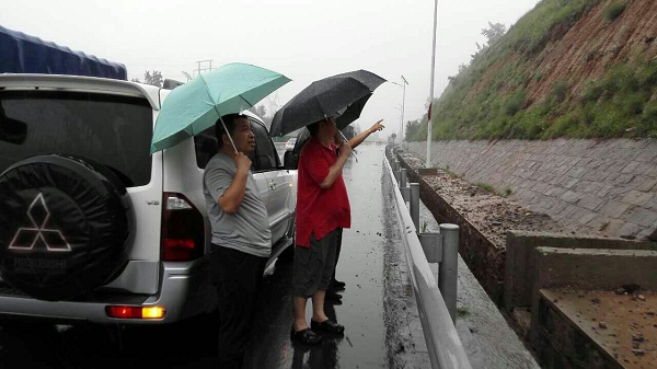 7月20日,公司防汛保暢應(yīng)急工作領(lǐng)導(dǎo)小組組長劉建民總經(jīng)理冒雨對公司防汛工作進(jìn)行檢查指導(dǎo),張學(xué)仁副總經(jīng)理、工程養(yǎng)護(hù)部相關(guān)人員陪同。近日,我省各地普降大雨,防汛形勢極為嚴(yán)峻。劉建民一行實(shí)地檢查京張高速公路沿線重點(diǎn)部位的防備情況,對易發(fā)生滑坡的山區(qū)挖方路段、道路兩側(cè)邊溝邊坡和易積水涵洞等進(jìn)行了細(xì)致檢查。劉建民強(qiáng)調(diào),各相關(guān)部門主要領(lǐng)導(dǎo)要切實(shí)負(fù)起責(zé)任,深入一線,靠前指揮,加強(qiáng)巡查,嚴(yán)格執(zhí)行24小時值班和領(lǐng)導(dǎo)帶班制度,全力以赴做好當(dāng)前強(qiáng)降雨各項(xiàng)預(yù)防工作,并及時反饋情況,確保信息暢通。要突出做好地質(zhì)災(zāi)害點(diǎn)防汛工作,加強(qiáng)對公路的巡查,及時組織人員清理溜方、塌方現(xiàn)場,確保行車安全暢通。 (工程養(yǎng)護(hù)部)