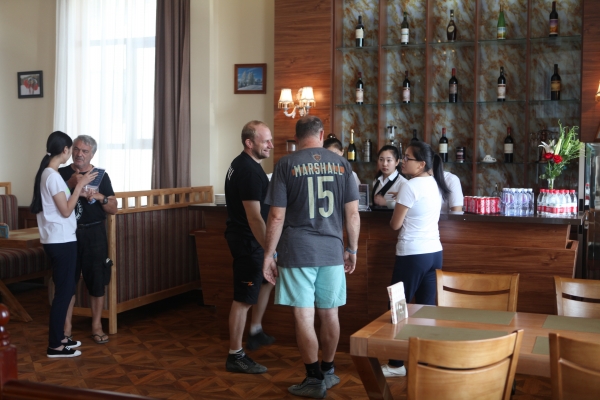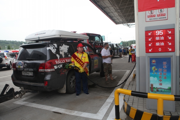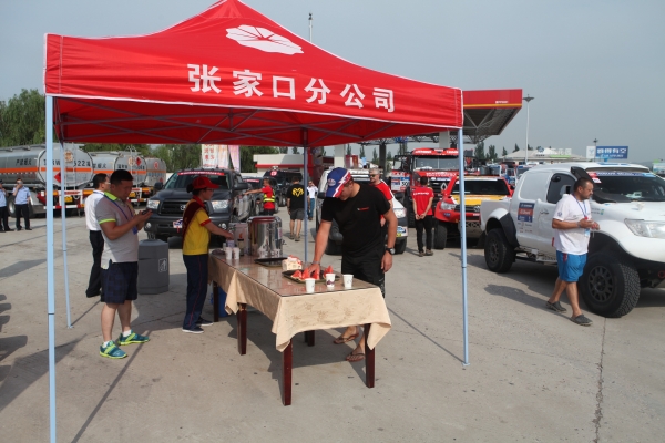 上午8點(diǎn)許,伴隨著陣陣賽車發(fā)動(dòng)機(jī)的轟鳴聲,比賽車隊(duì)駛?cè)敕⻊?wù)區(qū)進(jìn)行短暫停留。公司接待小組成員提前在各自崗位等候,保安、餐廳和加油服務(wù)人員各司其職,配合公安武警開(kāi)展停車引導(dǎo)、飲水和加油服務(wù)。在咖啡廳,賽車手們喝上了熱咖啡,超市和餐廳門前也提供了飲用水,忙碌有序的加油站旁邊,剛切開(kāi)的西瓜為選手所青睞……廣播里傳出了悠揚(yáng)的俄羅斯民歌,給長(zhǎng)途奔波的選手們送去了鄉(xiāng)音的慰藉。這些來(lái)自遙遠(yuǎn)異域的粗獷的賽車手們,紛紛豎起拇指,表達(dá)對(duì)中國(guó)人民熱情接待的謝意。