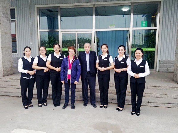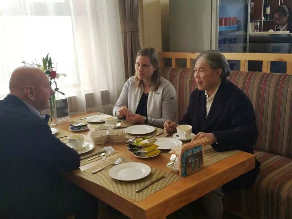 國際滑雪聯(lián)合會(huì)主席卡斯珀與接待人員合影