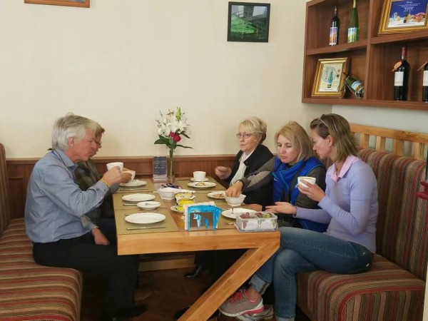 11日下午和12日上午,考察團(tuán)大隊(duì)人馬兩次蒞臨下花園服務(wù)區(qū)。經(jīng)過長途旅行后,服務(wù)區(qū)清新干凈的衛(wèi)生間、溫馨舒適的咖啡屋和彬彬有禮的接待人員給團(tuán)員們留下了良好的印象,洋溢在他們臉上的笑容就是最好的評語?疾靾F(tuán)成員興致勃勃地品嘗了香濃的咖啡和當(dāng)?shù)氐臅r(shí)鮮果品,經(jīng)過短暫休整后,乘車返京。