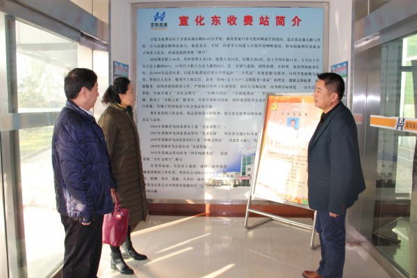 調(diào)研組還參觀了宣化東收費站黨員活動室,對京張公司及基層黨支部的黨建工作給予了充分的肯定,指出京張公司通過深入思考、精心籌劃、積極踐行讓基層黨建工作系統(tǒng)了起來;通過準確定位、精心提煉、認真打磨,使“兩學(xué)一做”與溫暖黨建、自主管理等工作以及職工的需求統(tǒng)籌了起來;基層黨支部通過學(xué)中干、干中學(xué),讓黨組織的戰(zhàn)斗力、黨員的先進性和職工的積極性凸顯了出來。