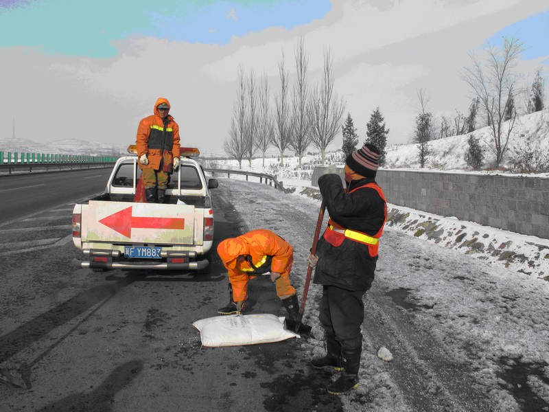 在本次除雪中,公司共投入1000噸噴灑式環(huán)保溶雪劑(液體)、60噸干灑式環(huán)保融雪劑。共動用各種除雪設(shè)備灑布車、除雪王、鏟車、人工灑布車等96個臺班,人工400余個,圓滿完成了除雪保暢任務(wù)。(李勇 成彥勇)
