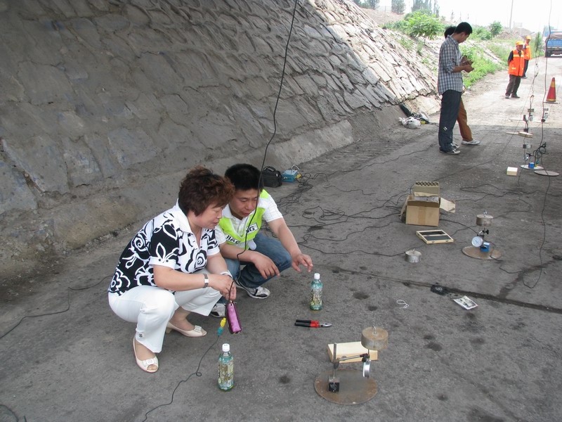 由于荷載試驗(yàn)必須用標(biāo)準(zhǔn)重量的汽車進(jìn)行加載才能測得詳細(xì)準(zhǔn)確的數(shù)據(jù),需在檢測期間斷交。為此公司與下花園交通局、交警隊(duì)聯(lián)系溝通,得到他們的大力配合,檢測時(shí)間安排在車流量較小的中午進(jìn)行。
