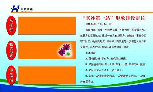 另外,該站將原有的宣傳展板進行了重新的排版和制作,改變了以往單調(diào)、呆板的模式,結(jié)合公司2010年工作任務(wù)目標(biāo),融入了東花園收費站“以車為本”的服務(wù)文化內(nèi)涵、“塞外第一站”形象建設(shè)定位等內(nèi)容,成為該站品牌文化建設(shè)的一個亮點。(東花園收費站 許莉莉)