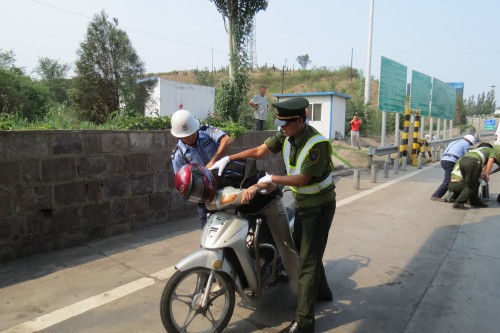 15點(diǎn)30分,隨著演練總指揮馮善軍副站長一聲令下,演練正式開始。首先進(jìn)行“防盜搶”實(shí)戰(zhàn)演練,收費(fèi)廣場由兩名收費(fèi)員扮演的“劫匪”手持砍刀騎著摩托靠近下班列隊行進(jìn)的收費(fèi)隊伍,企圖搶奪女收費(fèi)員手中的票款箱。崗?fù)な召M(fèi)人員見此情形,以最快的速度踩響報警器,隨即電話通知監(jiān)控員撥打110報警。跟班作業(yè)站長通過對講報告在站領(lǐng)導(dǎo)請求增援。在站領(lǐng)導(dǎo)第一時間報告公司主管領(lǐng)導(dǎo),迅速帶領(lǐng)人員趕赴現(xiàn)場增援。崗上跟班作業(yè)站長、保安及男收費(fèi)員利用手中的橡膠棍與“劫匪”進(jìn)行對峙,增援人員以最快的速度趕到現(xiàn)象、與崗上人員齊心協(xié)力將“劫匪”制服,等待公安機(jī)關(guān)人員到來,交由他們處理。