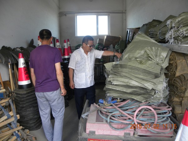 根據(jù)《河北省交通運(yùn)輸廳關(guān)于印發(fā)全系統(tǒng)2015年汛期安全生產(chǎn)檢查方案的通知》,為進(jìn)一步做好防汛工作,確保度汛安全,7月2日,公司安全生產(chǎn)部對防汛物資儲(chǔ)備情況進(jìn)行檢查。實(shí)地查看物質(zhì)儲(chǔ)備倉庫,對照應(yīng)有物資臺(tái)賬,對鐵鍬、鎬、編織袋、鐵絲、木樁等各類防汛和應(yīng)急物資的數(shù)量、品種、管理儲(chǔ)備等情況進(jìn)行了詳細(xì)檢查。經(jīng)檢查,防汛物資儲(chǔ)備情況良好。(安全生產(chǎn)部)