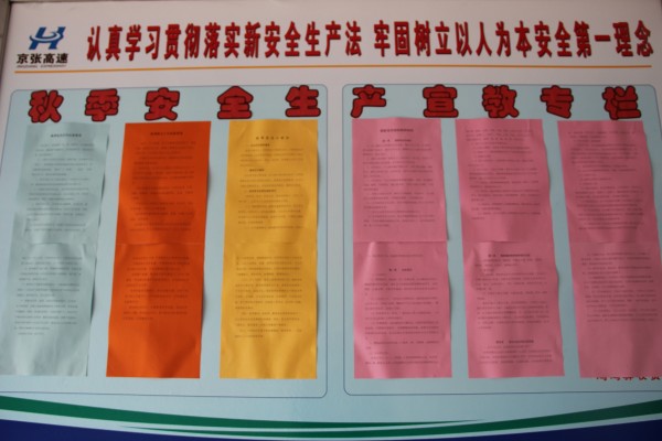 進(jìn)入秋季天干物燥,極易發(fā)生火災(zāi)等安全隱患,為確保全站人員生命及財(cái)產(chǎn)安全,雞鳴驛收費(fèi)站根據(jù)季節(jié)特點(diǎn)易引發(fā)的安全問題,利用宣傳展板制作了秋季安全生產(chǎn)宣教專欄。展板內(nèi)容分別包括:秋季安全小常識(shí)、秋季安全行車注意事項(xiàng)、秋季防火十大注意事項(xiàng)、消防安全知識(shí)等內(nèi)容,分別介紹了生產(chǎn)生活中易發(fā)生的安全除患和每個(gè)人應(yīng)該注意的安全事項(xiàng),從而提高自我保護(hù)自我預(yù)防的能力,同時(shí),對(duì)全站人員的消防安全法律法規(guī)進(jìn)行了宣傳教育,加深了大家對(duì)消防安全法律法規(guī)的了解,進(jìn)一步增強(qiáng)了全員的消防安全意識(shí),為全面完成年底的各項(xiàng)安全生產(chǎn)工作奠定基礎(chǔ)。(雞鳴驛收費(fèi)站 王春燕)