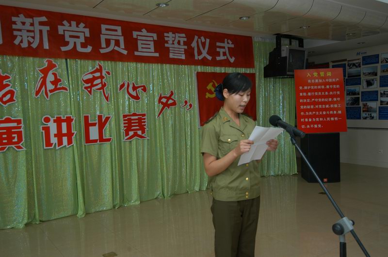 石婷同志代表新黨員向黨組織保證:“我們有著同老一輩共產(chǎn)黨人一樣堅定的政治立場,有著堅定的理想信念,有著為中國特色社會主義偉大事業(yè)而奮斗終生的決心,我們會時刻銘記自己是一名光榮的中國共產(chǎn)黨黨員,我們肩負著建設(shè)祖國未來的重任,我們絕不辜負黨組織對我們的殷切希望”。(秦國梁)