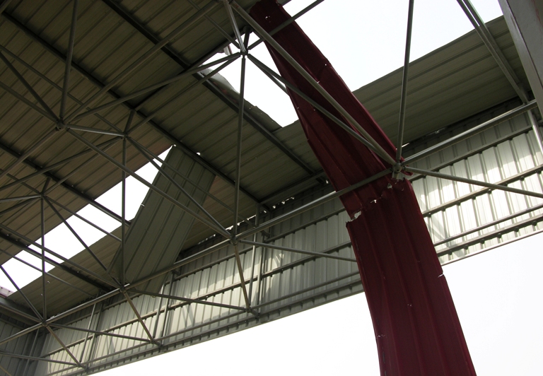 據(jù)當(dāng)?shù)貧庀蟛块T(mén)數(shù)據(jù)顯示,當(dāng)日上午9點(diǎn)左右,最大瞬時(shí)風(fēng)力達(dá)到28米每秒(10級(jí)大風(fēng)),雞鳴驛地處風(fēng)口,收費(fèi)站在這次強(qiáng)風(fēng)災(zāi)害中首當(dāng)其沖,整個(gè)站區(qū)籠罩在漫天風(fēng)沙中,能見(jiàn)度一度不足100米。狂風(fēng)中,收費(fèi)大棚彩鋼棚頂西側(cè)瞬間被撕裂,幾米長(zhǎng)的彩鋼頂板被掀開(kāi),隨著狂風(fēng)搖曳并擊打鋼梁,發(fā)出刺耳的金屬撞擊聲。與此同時(shí),超寬收費(fèi)車(chē)道室外攝像機(jī)和超寬發(fā)卡車(chē)道信號(hào)燈也被大風(fēng)吹落,大棚頂端的“雞鳴驛”三個(gè)字標(biāo)被風(fēng)扯開(kāi)并劇烈搖晃,距收費(fèi)區(qū)百米之外的“剎車(chē)失靈避險(xiǎn)車(chē)道”指示牌也被刮倒在地,院內(nèi)一株柳樹(shù)被攔腰吹斷,另一株被連根拔起。強(qiáng)風(fēng)使收費(fèi)及發(fā)卡車(chē)道的欄桿機(jī)失去了作用,升降桿不能正常起降,自動(dòng)發(fā)卡機(jī)出現(xiàn)故障,收費(fèi)車(chē)道也出現(xiàn)了無(wú)計(jì)重?cái)?shù)據(jù)的現(xiàn)象。