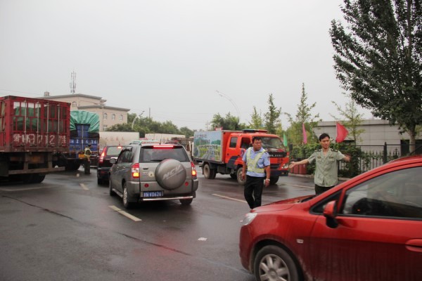 下午三時,交通管制仍在進(jìn)行,中班人員以最快的速度完成交接。此時,等待上高速的車輛已經(jīng)排了好幾公里,下道車流量越來越大,小型車輛上道的通行空間也越來越窄。上下道車輛幾乎將整個廣場堵得水泄不通。一時間烏云密布,電閃雷鳴,很快下起了大雨,給本來就嚴(yán)峻的保暢工作帶來了更大的難題。大雨中每個人全身濕透,但沒有一個人退縮。隨著夜幕降臨,到晚上六點半,交通管制結(jié)束,直到晚上七點多,收費廣場才逐漸恢復(fù)了正常的通車秩序。通過六個多小時的奮戰(zhàn),沙城站順利完成了艱巨的保暢任務(wù),大家的臉上都露出了欣慰的笑容。(沙城收費站 劉曉靜)