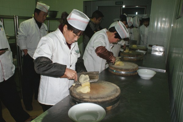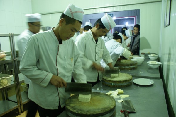 廚師考核內(nèi)容為每人炒三道指定菜,即土豆絲、魚香肉絲和綠豆芽,要求速度、色、香、味俱佳為優(yōu)。