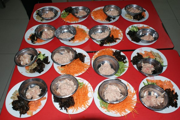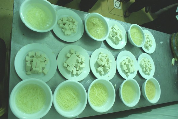 配菜考核內(nèi)容為刀工和抓菜,其中刀工考核切土豆絲和豆腐,抓菜考核魚香肉絲和京醬肉絲。