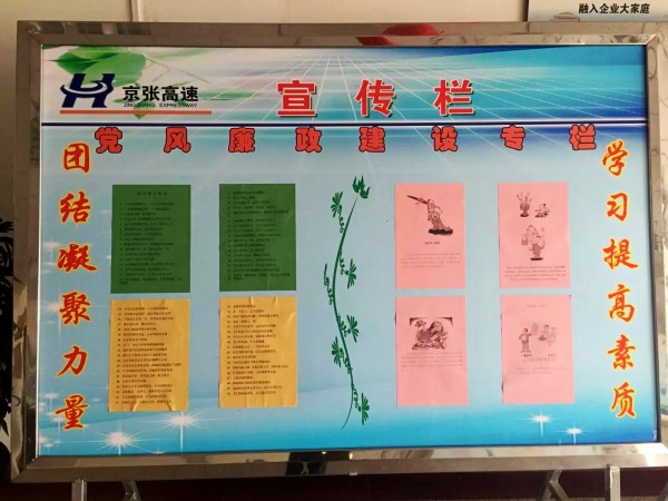 宣傳欄主要體現(xiàn)了兩個(gè)特點(diǎn):一是主題鮮明。主要以黨風(fēng)廉政建設(shè)和反腐倡廉工作為題材,把思想教育和加強(qiáng)作風(fēng)建設(shè)打造為民、務(wù)實(shí)、清廉的黨員干部隊(duì)伍結(jié)合起來(lái),做成弘揚(yáng)正氣的宣傳陣地;二是形式多樣。宣傳欄通過(guò)張貼反腐倡廉文章、廉政格言警句、漫畫(huà)等,不斷豐富廉政宣傳內(nèi)容。