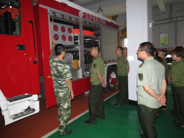 活動(dòng)中,作為講解員的中隊(duì)指導(dǎo)員白力廣首先帶領(lǐng)大家來到消防車和先進(jìn)的消防器材面前,詳細(xì)講解了消防車裝備、滅火戰(zhàn)斗服、空氣呼吸器等特種器材裝備的操作方法和用途,使職工正確認(rèn)識(shí)和了解了消防車和消防器材。在榮譽(yù)室,大家在奮斗歷程展板前駐足停留,仿佛也置身于歷年來消防戰(zhàn)士拼搏、奉獻(xiàn)的歷程中。在隨后的時(shí)間里大家在指導(dǎo)員白力廣的帶領(lǐng)下依次參觀了消防教育館、文化長廊、接警值班室和戰(zhàn)士寢室。將近一個(gè)小時(shí)的參觀時(shí)間里,職工們表現(xiàn)出了濃厚的興趣,所提出關(guān)于消防方面的問題得到了指導(dǎo)員白力廣耐心細(xì)致地解答。