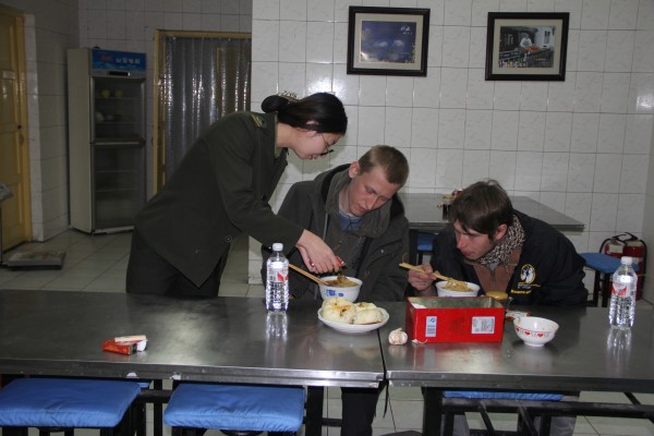 當(dāng)天下午六時(shí)許,天色已有些暗了,正在值崗的收費(fèi)二班班長韓玉新發(fā)現(xiàn)收費(fèi)廣場有兩人東張西望、徘徊不前,便上前詢問,見到收費(fèi)員后,兩位肩背背包,風(fēng)塵仆仆的“老外”十分急切,連比帶劃地試圖與韓玉新交流,無奈言語不通,也不知他們想表達(dá)什么,見此狀況韓玉新立即上報(bào)值班站長,并將兩人帶至“司機(jī)之家”。值班站長張海鵬、姜保勇聞訊立即到場,并找來英文較好的收費(fèi)員郝潔擔(dān)任翻譯,原來,這兩名外國人來自俄羅斯,22歲,途經(jīng)蒙古國,旅行至此,身上所帶的錢所剩無幾,且一天沒有進(jìn)餐,下一站想到首都北京旅游。
