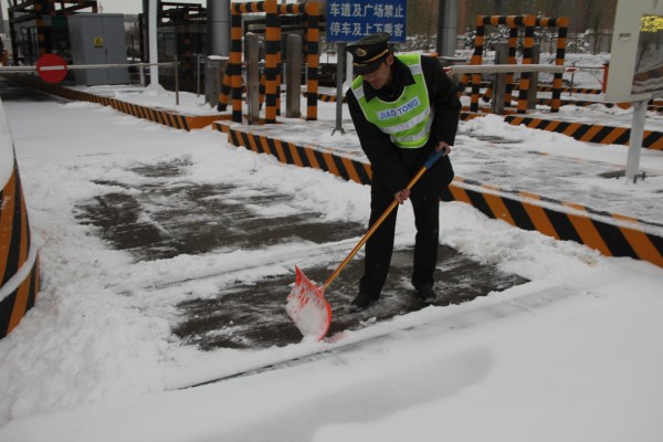 雪情就是命令,22日天剛蒙蒙亮,雞鳴驛收費(fèi)站迅速啟動(dòng)除雪保暢預(yù)案,組織收費(fèi)員、后勤人員投入到除雪保暢戰(zhàn)役之中。為確保在最短的時(shí)間內(nèi)清理完廣場、車道及站區(qū)的積雪,值班站長合理分配人員,采取分組、分片包桿的方式,不間斷作業(yè),集中攻堅(jiān)。在這場沒有硝煙的戰(zhàn)斗中,大家頂著刺骨的寒風(fēng),揮舞著手中的推雪板,為了一個(gè)共同的目標(biāo)努力著。連下夜班的班組也加入到除雪隊(duì)伍當(dāng)中,沒有絲毫的怨言。經(jīng)過近三個(gè)小時(shí)的艱苦奮戰(zhàn),上午10點(diǎn),廣場、站區(qū)的積雪全部清除,順利完成除雪保暢任務(wù)。以實(shí)際行動(dòng)展現(xiàn)出一支勇于擔(dān)當(dāng),團(tuán)結(jié)自信,拼搏實(shí)干的收費(fèi)團(tuán)隊(duì)。