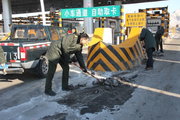2016年2月14日,農(nóng)歷正月初七,是春節(jié)長假后上班的第一天。由于大年初五晚上的降雪和初六的大幅降溫,使得地面未徹底清理干凈的積雪結(jié)成了冰,為了給廣大司機(jī)提供一個(gè)安全的行車環(huán)境,這天一上班,值班領(lǐng)導(dǎo)便組織在站后勤人員清理殘留積雪。大家人手一把鐵鍬或是掃帚,冒著零下十幾度的寒風(fēng),到收費(fèi)廣場(chǎng)掃除積雪,大家有的鏟雪、有的往車斗里裝,有人負(fù)責(zé)往走運(yùn),有人在車道里、有人在島頭前,大家分片包干,干的熱火朝天,經(jīng)過一個(gè)多小時(shí)的緊張勞動(dòng),車道和廣場(chǎng)內(nèi)的積雪被徹底清理干凈,為司機(jī)提供了一個(gè)更加快捷、安全的行車環(huán)境。(雞鳴驛收費(fèi)站 王春燕)