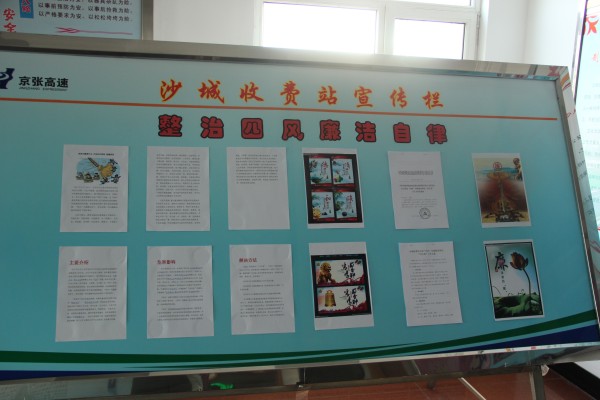 近日,結(jié)合“四風(fēng)”問(wèn)題整治情況“回頭看”工作的開(kāi)展,沙城收費(fèi)站專門制作了一期以“整治四風(fēng)、廉潔自律”為主題的宣傳展板,展板內(nèi)容包括了“四風(fēng)具體內(nèi)容”、“四風(fēng)問(wèn)題解讀”、“廉政宣傳圖片”以及沙城站“四風(fēng)回頭看”工作方案等,通過(guò)一系列圖文并茂的圖片,使全體職工真正了解到整治“四風(fēng)”問(wèn)題的重要性,并與自身收費(fèi)工作相結(jié)合,做到風(fēng)清氣正、廉潔自律。(沙城收費(fèi)站 李曉紅)