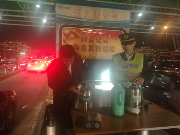 緩慢行駛的車流,一閃一閃的尾燈,點(diǎn)綴著似藏青色的夜空,國慶節(jié)小長假第四天的夜晚,因返京車輛逐漸增多,并且多地發(fā)生追尾事故,東花園主線站入京車流量較大,值班站長吳占強(qiáng)迅速組織黨員干部及備勤人員到崗,在收費(fèi)廣場醒目位置設(shè)立了便民服務(wù)臺。堅守在一線的黨員干部及職工們以“有我堅守、為你護(hù)航”的工作信念,細(xì)致周到的服務(wù)熱情,為過往司乘人員提供飲用水、藥品、路況信息等多項便民服務(wù),耐心地為司乘人員答疑解難和指示行車路線,贏得了過往司乘的一致贊譽(yù),使司乘人員行駛京張高速一路無憂。(東花園收費(fèi)站 王燕吉)