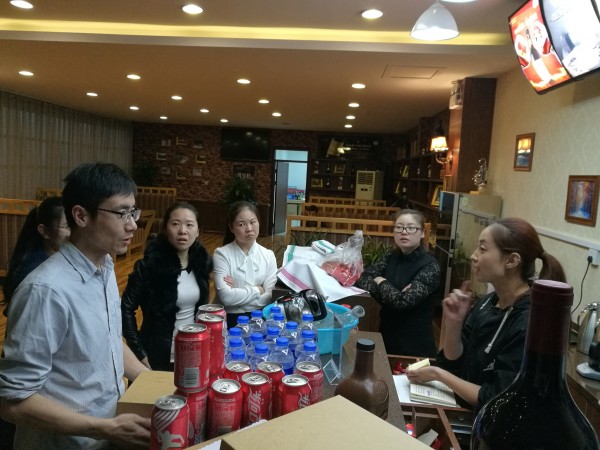 三、咖啡專業(yè)知識的再次加強(qiáng):在忙碌了一天后,大家并沒有早早休息,特聘專業(yè)咖啡師為大家講解咖啡制作流程和手法的重要性;對牛奶、咖啡豆等配料進(jìn)行了細(xì)致的分辨,并討論接待人員的著裝、站位、以及餐具的擺放位置等工作細(xì)節(jié)。
