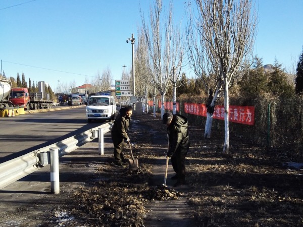 12月1日上午,下花園收費(fèi)站利用留站日時(shí)間組織全站人員對(duì)廣場(chǎng)道路兩側(cè)的積雪,綠化帶及邊溝枯葉雜草、白色垃圾進(jìn)行了徹底清理。活動(dòng)前,站領(lǐng)導(dǎo)為大家劃分了責(zé)任區(qū),明確了衛(wèi)生標(biāo)準(zhǔn);顒(dòng)中,大家積極行動(dòng),充分發(fā)揚(yáng)不怕臟、不怕累精神,站領(lǐng)導(dǎo)更是以身作則、干勁十足。經(jīng)過全站人員近二個(gè)小時(shí)的共同努力,廣場(chǎng)道路兩側(cè)衛(wèi)生死角得到徹底清理整治,站口環(huán)境面貌煥然一新。(下花園收費(fèi)站 耿海亮)
