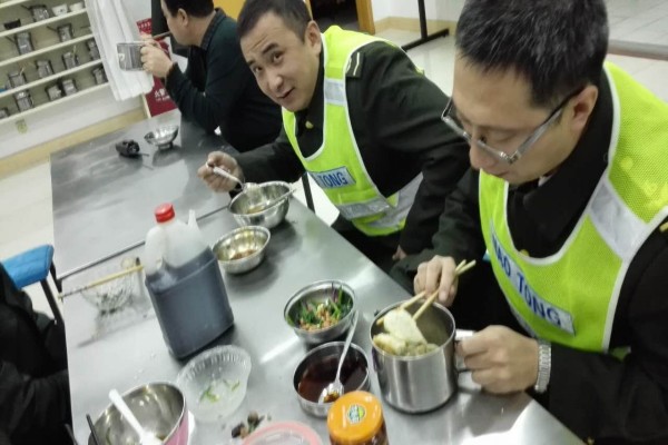 21日下午,沙城收費站后勤崗位人員早早的來到了食堂,與廚師們一起動手包餃子,共同為堅守在收費一線的同志們準備一桌可口的冬至晚餐,大家各自發(fā)揮出自己的特長,有的搟皮兒、有的揉面、有的拌餡兒,一會兒的工夫,五大屜形態(tài)各異的餃了就包好了,一個個小小的水餃,或站著,或躺著,一排排,一列列,讓人垂涎三尺。晚餐時間到了,一盤盤熱氣騰騰的餃子端上桌,饞人欲滴,處處飄香,大家圍坐在一起品嘗著自己的勞動成果,整個食堂充滿了餃子的香氣與職工們的歡笑聲,在這個寒冷的冬至夜里,在這個本應該與家人團聚的時刻,這一盤盤站區(qū)的水餃讓大家感受到了不一樣的美味、體會到不一樣的溫暖,讓這個冬夜也顯得不再寒冷。