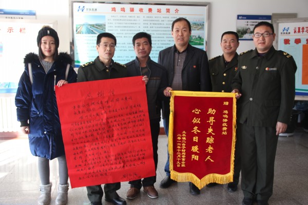 12月18日晚,正在值崗的收費三班,遇到了一位凍的瑟瑟發(fā)抖,來討水喝的老人。通過詢問,了解到老人似乎并不知道該往哪去,于是,班長郭強(qiáng)把老人安頓在了便民服務(wù)亭休息,并將情況向前來接班的二班進(jìn)行了說。值班站長姜保勇要求妥善安頓好老人,有情況及時與站里溝通匯報。完成接班后,班長韓玉新用自己的水杯為老人倒了熱水,泡上了熱騰騰的方便面,繼續(xù)了解著詳細(xì)情況,得知此人是二十多公理外的沙城鎮(zhèn)二臺村子人,且老人并不知道自己出走了多久。憑他的經(jīng)驗判斷,這位老人很有可能患有老年癡呆癥,家人也許正在四處尋找,他意識到了事情的緊急性,于是,急忙通過站里聯(lián)系到他的朋友,確定了此人為二臺子村人,并托朋友幫忙積極為老人聯(lián)系家屬。與此同時,忙著結(jié)算的票證員聶利明聽到收費三班人員的議論,也突然聯(lián)想到了自己朋友圈內(nèi)的尋人啟示,和這位老人的情況有所相似。為核對情況是否一致,聶利明趕快拿出手機(jī)再次查看這個尋人啟示,確認(rèn)情況符合后,又積極通過自己的微信群聯(lián)系到老人的家屬。就是這樣幾經(jīng)輾轉(zhuǎn),收費班長韓玉新和票證員聶利明通過各自的渠道為老人聯(lián)系上了正在尋找老人的兒女,并于當(dāng)晚將老人平安交到家人手里,并婉言謝絕了家屬感謝的禮物,正如收費員自己所說:“扶危幫困,是我們的責(zé)任,我們不求回報。”正是有這樣一群熱心可愛的收費人員,讓我們的寒夜變得溫暖,道路也更加平坦。(雞鳴驛收費站 王春燕)