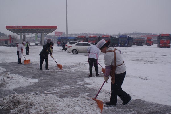 2月21日9點(diǎn)40分,下花園地區(qū)迎來(lái)2017年的第一場(chǎng)中雪,不到半個(gè)小時(shí)整個(gè)服務(wù)區(qū)都被積雪給覆蓋了,為了確保服務(wù)區(qū)廣場(chǎng)停車安全暢通,各營(yíng)業(yè)場(chǎng)所有序開(kāi)展工作,服務(wù)區(qū)第一時(shí)間準(zhǔn)備好除雪的各項(xiàng)準(zhǔn)備工作。下午2點(diǎn)時(shí)分雪停了一會(huì),除雪保暢應(yīng)急小組隊(duì)員即刻按分工負(fù)責(zé)到現(xiàn)場(chǎng),做好各部門的除雪保暢工作,保安人員則在廣場(chǎng)有序的指揮車輛停放,保障出入的車輛安全暢通。(下花園服務(wù)區(qū) 黃雪梅)