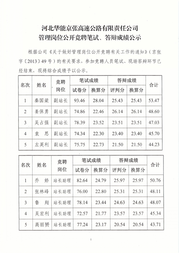 管理崗位公開(kāi)競(jìng)聘筆試、答辯成績(jī)公示