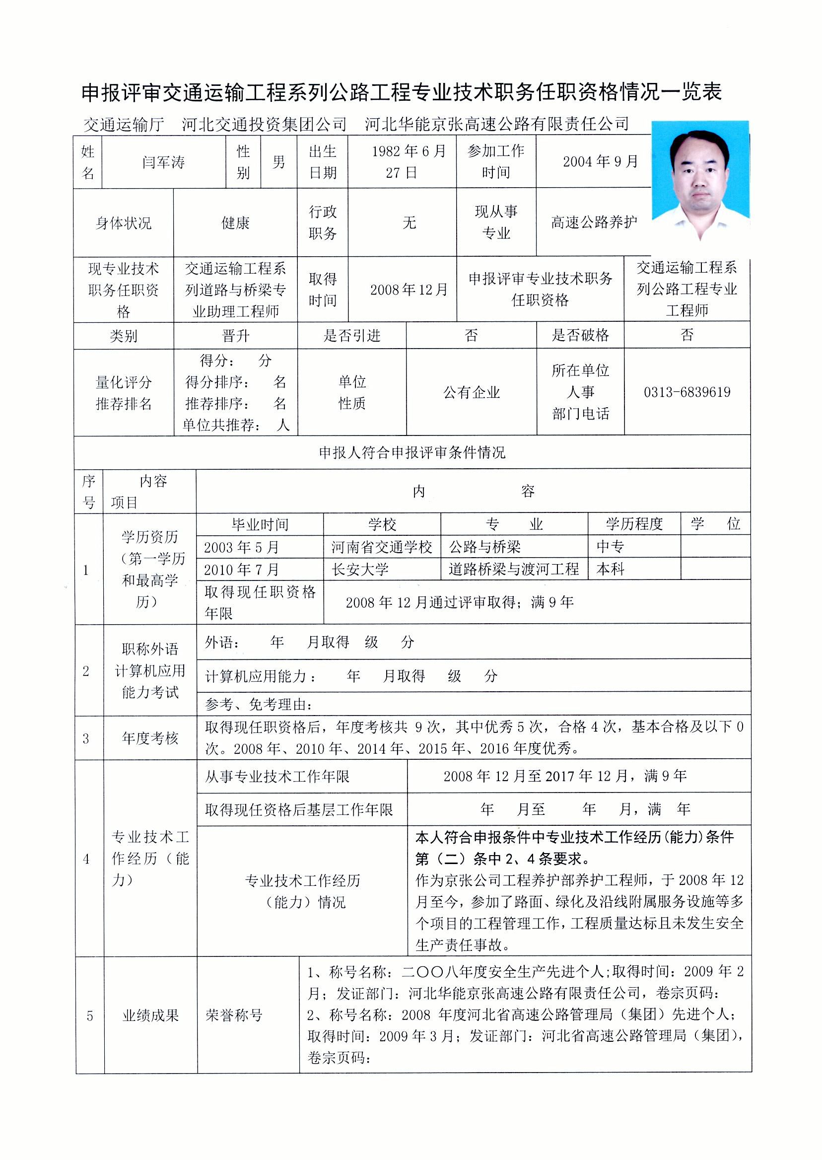 京張公司2017年度專業(yè)技術(shù)職稱申報公示(閆軍濤)