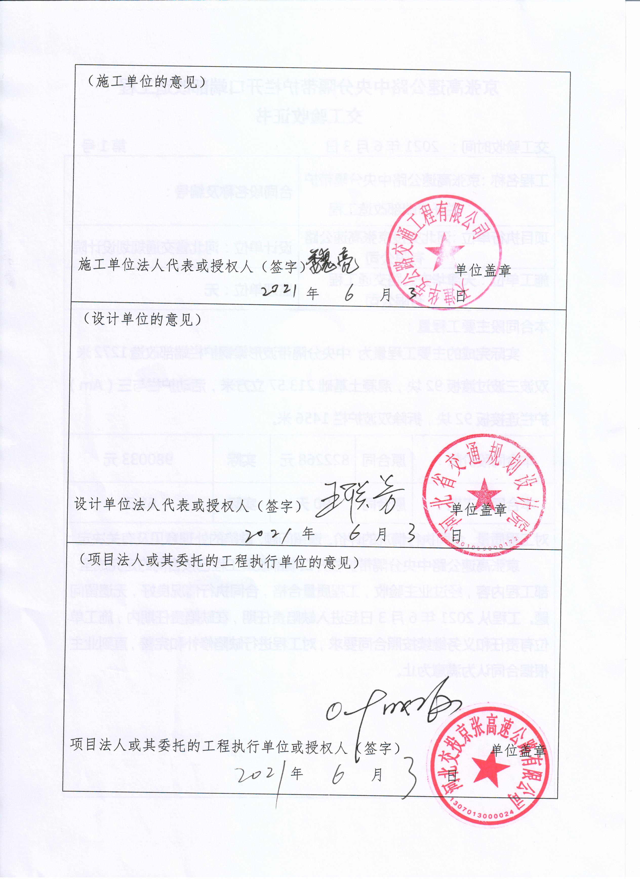 京張高速公路中央分隔帶護(hù)欄開口端部改造工程交工驗(yàn)收證書
